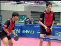 在随后进行的另一场男双半决赛中,由我国选手孔令辉和刘国梁对阵韩国选手金泽洙和吴尚垠。结果孔令辉和刘国梁直落三局,以3:0战胜对手,与王励勤和阎森在男双决赛中胜利会师。