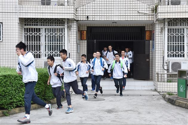 集合完毕后各年级迅速清点人数分别上报至政教处负责人,最后汇总至高中部校长杜宗平处。整个疏散过程用时6分钟,取得了圆满成功。