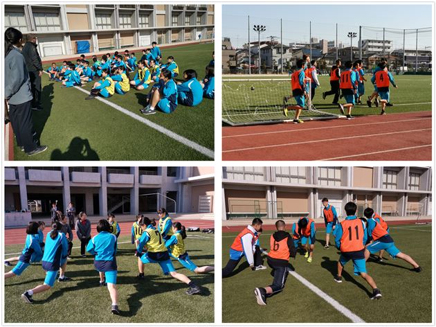 下午的体育课刚好是足球课,安排了一场足球友谊赛,虽然是友谊赛,但大家压腿、热身,一点也不含糊。日本学生在体育课上,统一都是薄衣短裤,当天虽然是晴天,但气温只有几度,他们的抗寒能力确实厉害。据老师介绍,在日本的学校,无论哪个年龄段,体育课都是薄衣短裤,看来日本人为了增强国民身体素质,也是一丝不苟的。