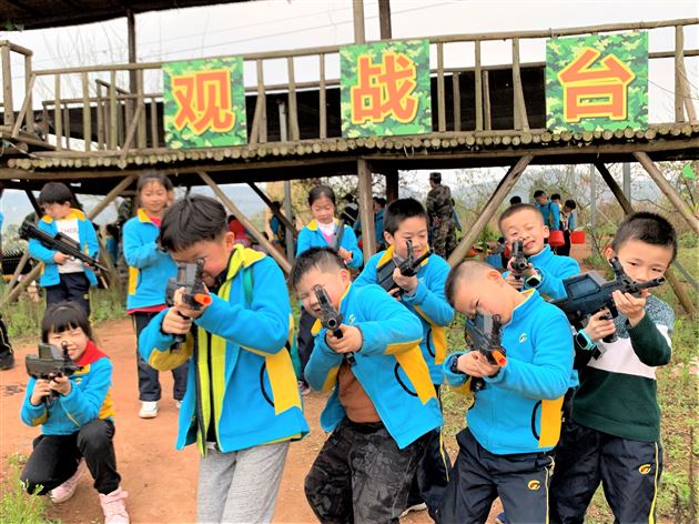孩子们在实践过程中一切听从教官和老师们的指挥,在队伍行走中不喧哗、不拥挤,在游玩过程中谨遵安全第一,讲究文明卫生,不乱丢垃圾。丛林穿越、萌宠乐园、空中飞人、做手工、地龙穿越、真人CS……孩子们在春意盎然的季节里放飞心情,玩得不亦乐乎。真人CS为大家最喜欢的项目,在这里,每个人都是一名小战士,他们手握长枪、钻地洞、瞄准“敌人”,“呀!我打到你了。” “胜利了,欧耶!” ……孩子们一片欢声笑语!