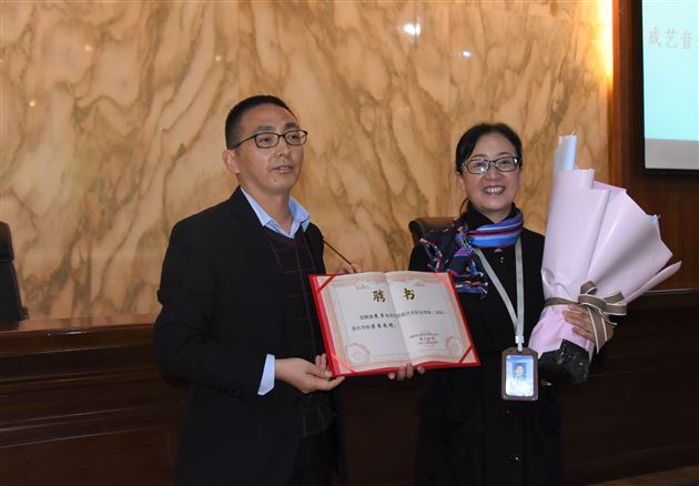 由于我校附小苏萍校长在艺术工作上的突出成绩,在见习活动欢迎仪式上,成都艺术职业学院音乐学院院长李飞教授为苏萍校长颁发“成都艺术职业学院音乐学院荣誉教授”聘书。活动仪式由附小德育处副主任张晓莉主持,附小教导处主任温红、双方担任音乐课程的主要老师及音乐学院2018级音乐教育专业的所有学生参加了仪式。