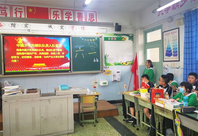 活动开始后,第一环节是奏唱国歌和少先队队歌,重温入队誓词。整齐有力的歌声表达了学生对祖国的热爱;入队誓词的重温,又一次引导少先队员从小听党话,跟党走。