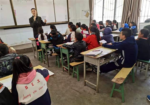 16日上午,骨干教师帮扶小组一行抵达博洛乡中心校。进到校园,与该校校长进行短暂交流后,帮扶组就马不停蹄兵分四个学科直接进入各年级课堂听课指导。宋伟老师进入五年级二班听数学课,宋杰老师进入六年级一班听英语课。第二节课,由宋伟老师和宋杰老师分别在同一年级进行了同课异构。通过听课了解及短暂接触学生后,两位老师当即又一次临时调整了各自的教学目标和内容,进一步降低了教学难度和要求。通过设置丰富课堂游戏和活动,增加小组和个人评价,利用各种教学手段激发学生的学习参与度,构建学生小组探究活动,最终让学生从最开始的紧张羞涩不开口到最后积极参与回答问题和主动表达或表演。整个课堂气氛融洽,让听课学习的博洛乡中心校老师们不仅感叹:原来课还可以这样上!课后,宋伟老师和宋杰老师就如何备好一堂课的心得和课堂中一些常态有效的教学手段和方式方法与博洛乡的老师们进行沟通交流。