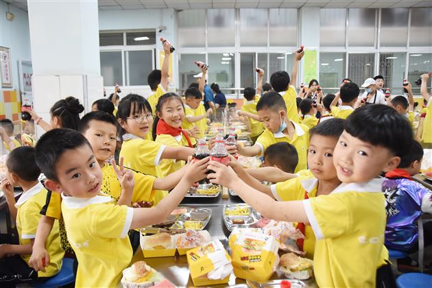 上午11:30,“美味六一”西餐文化体验之旅开启。水果排骨牛肉、汉堡可乐薯条,丰富的食物让孩子们雀跃不已。每个班在就餐前都进行了西餐礼仪的学习,故而整个餐厅的就餐氛围热闹而有序。