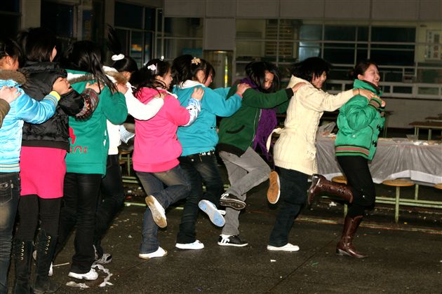 感动,通过血液从心底流淌到指尖。于是,全场师生手拉手跳起了锅庄舞,晚会达到最高潮。而充满乐趣的兔子舞则让现场笑声不断。歌声、笑声交织在一起,成为迎接新年的交响曲。