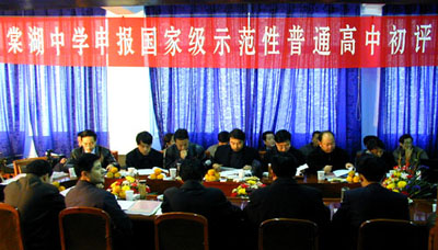 2000年12月25--27日,由成都市教委组织的、由成都西北中学、成都12中、蒲江中学和新津中学等4所省级重点中学的校长、副校长以及市教委副主任雷解民、基教处处长蒋平组成的成都市“国家级示范性普通高中”初评检查组对棠湖中学申报“国家级示范性普通高中”的工作进行了初评检查。双流县县委副书记、县长冷刚,副县长周素琼,县教委主任李蜀、副主任刘志武、黄大成、陈兴华参加了此次检查,双流中学副校长任明中,双流艺体中学校长谢祖福到场观摩了整个检查过程。