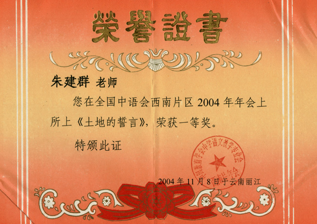 2004年11月8日,来自四川省、重庆市、云南省、贵州省、广西省的600余名语文教师、10多名语文教育专家、30多名省市语文教研员和人民教育出版社顾之川博士、《中学语文教学参考》葛宇虹副主编会聚云南丽江,观赏了由四省五方选拔的12名初、高中语文教师精彩的现场教学。大会评出全国一等奖2名。棠湖中学朱建群老师代表四川省参加赛课,荣获全国一等奖。