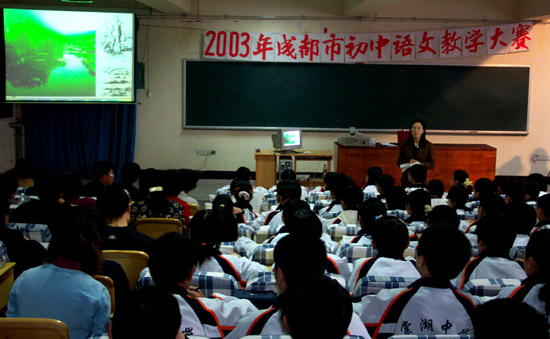 “2003年成都市初中语文大赛”4月16日至18日在棠湖中学举行,来自成都市各区县的29位选手参加了本次大赛,600多位一线教师到场观摩。