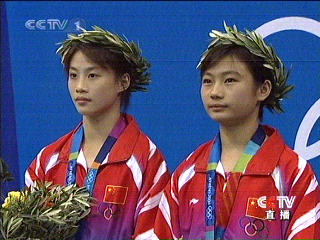 新浪体育讯 雅典奥运会跳水比赛于北京时间8月17日凌晨2点在奥林匹克水上综合中心继续进行。继首日摘得女子双人3米板和男子双人10米台两枚金牌之后,两名17岁的小将劳丽诗和李婷联袂为中国代表团夺得了本次比赛的第三枚跳水金牌,她们的成绩为352.14分。这也是中国代表团在本次奥运会上摘得的第十枚金牌。