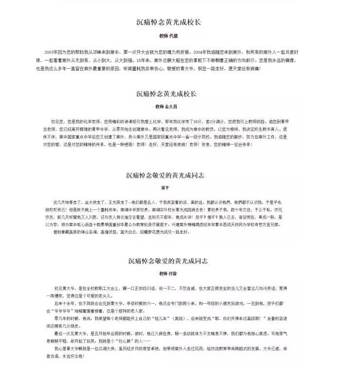 一瞬间,各界纷纷发文,表达对黄光成的追思之情,我们选取了部分教育圈、学生、校友、家长的言论,以此再一次追忆、走进黄老的世界。