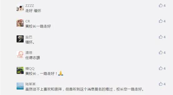 @也许会:“虽然我未见过你 ,但我的两个女儿都在棠外, 大女儿出生那年你建立了棠外,有种失去亲人的感觉,黄校长一路走好!”